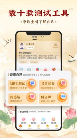 灵机妙算的个人报告依托专业知识与精细算法生成。借助心理测试、心理树洞等功能,它能更精准地洞察你的内心需求与困扰。这类个人报告有助于你更深入地认识自我,探寻解决问题的途径。在灵机妙算平台上,你可体验与心理专家及情感婚姻达人的在线交流服务。这些专业人士均经过系统培训,能为你提供专业的建议与解答。无论你遭遇的是情感方面还是婚姻层面的问题,他们都会耐心倾听,并给出最契合的建议。与他们的沟通不仅能化解你的困惑,还能助力你提升自身的情感智慧。
