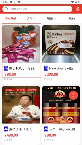 在休闲食品列表中,点击需要的商品条目。