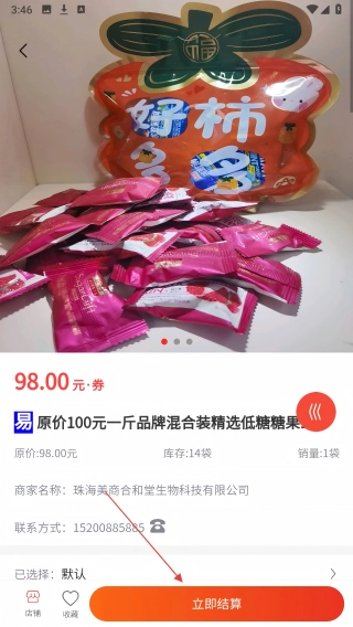 进入商品详情页面,浏览完商品信息后,点击页面底部的【立即结算】按钮。