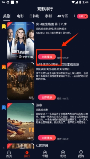 在排行页面选择目标剧集,点击立即播放开始观看。