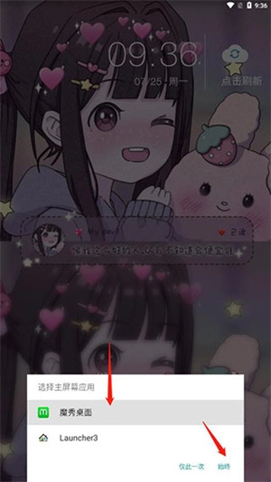 选择魔秀桌面,接着点击下方的“始终”按钮,就能将其设置为默认且永久生效的桌面。