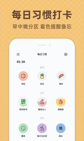 时光打卡是一款功能丰富的工具应用,它可以帮助我们养成良好的习惯。在软件中,我们可以看到每个习惯的完成状态、累积打卡天数以及打卡进度条,这样每天的进步都能一目了然,让我们充满成就感。优秀的人往往都有良好的习惯,因为习惯决定了我们的人生。如果我们拥有良好的习惯,我们就有可能成为一个优秀的人。我们是否也有一些坏习惯呢?比如熬夜、无法早起、想减肥但却没有坚持跑步、想背单词但总是拖延、想认真学习但总是被懒惰克制、想戒烟、戒酒、戒宵夜却总是失败。这些坏习惯常常因为我们的懒散和拖延而导致我们无法坚持下去。