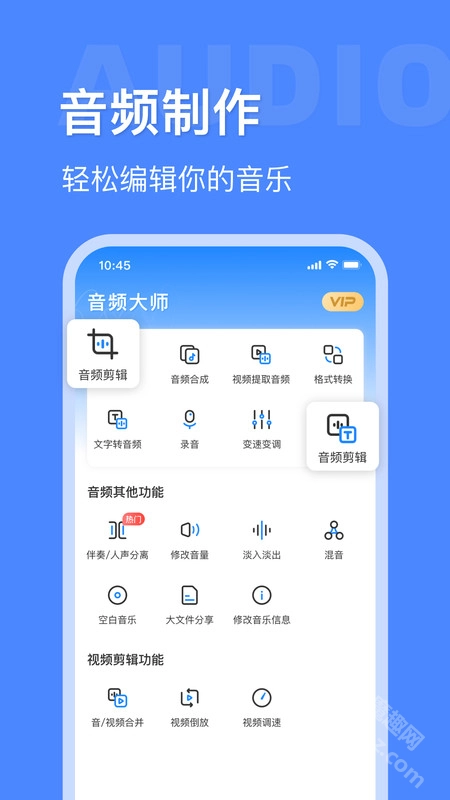 音频剪辑功能支持毫秒级的专业处理,用户可从本地音乐库导入音频文件,自主设定剪切区间,完成音频的编辑与制作。