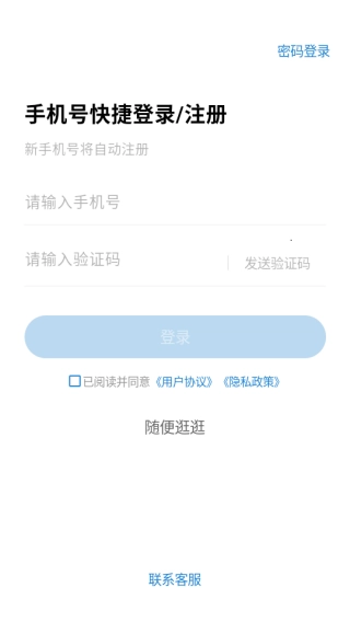 1、安装软件后打开,进入到登录界面,输入手机号验证码完成登录。