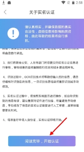 接下来会有一封包含详细实名认证内容的文件需要用户阅读,请务必仔细阅读完毕后再点击开始认证。
