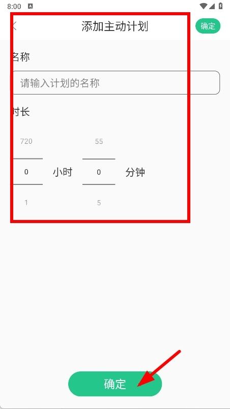 填写计划名称与时长,点击确定按钮,即可完成主动计划的添加操作。
