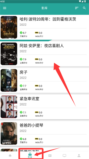 1、进入影库页面浏览各类影视节目,能够查看相应的评分信息。