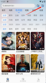 1、进入到首页点击右上角的历史。