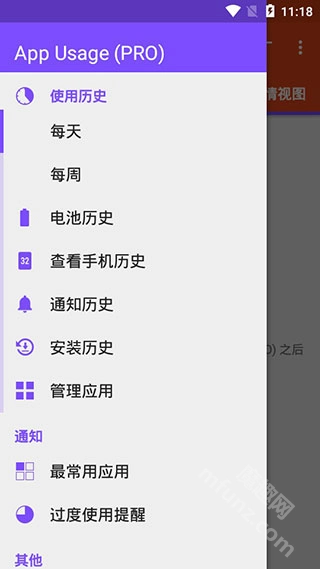 4、设置完成后,App Usage开始记录应用程序使用情况,用户可在主界面查看使用历史、通知、提醒和电池消耗。