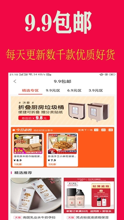 五亿联盟是广西五亿联盟网络科技有限公司打造的省钱购物应用,平台每日推荐各类精选好物,更有大量高额度隐藏优惠券供用户一键检索、免费领取并直接抵扣消费;用户既能享受购物优惠,还可通过分享邀请粉丝获取佣金收益,此外它也是一款颇具优势的创业工具,期待您的使用。