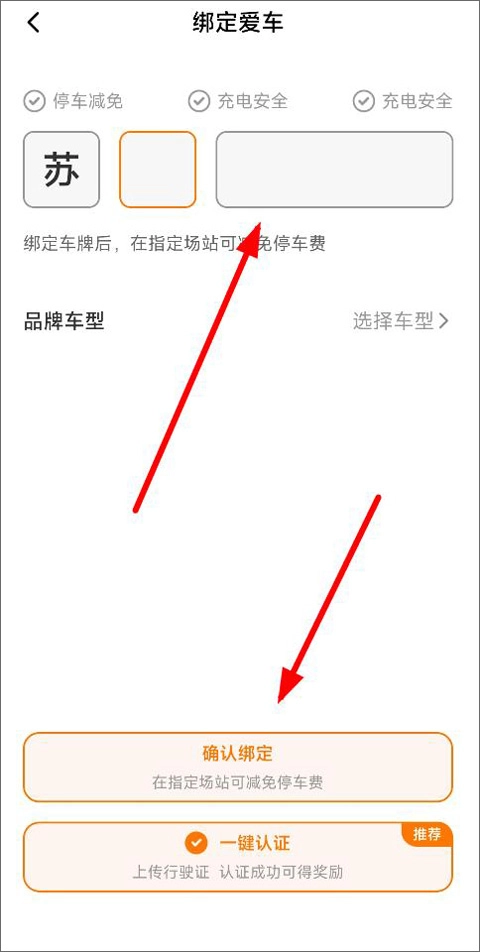 4、在绑定爱车的页面,用户需输入车辆的车牌号,选择对应的车型,之后点击确认绑定按钮就可以完成操作了。