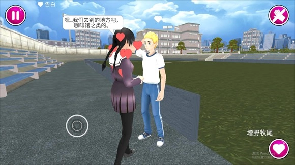 5、最后一步,前往操场找到男主角(靠近时会出现红色爱心提示),并上前与他对话,即可完成任务。