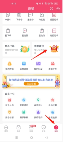 打开该软件后,点击“我的”选项,接着选择“我要赚钱”选项。