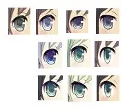 眼型图(左眼):第一行---A能出现的四种眼型;第二行---B能出现的三种眼型;第三行---C能出现的三种眼型