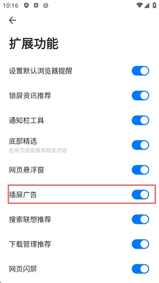 5、随后进入“扩展功能”界面,将“插屏广告”对应的开关关闭即可。