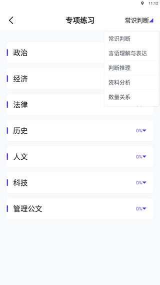 接下来点击页面中间的【专项练习】快捷入口,右上角的位置可以进行定位切换。