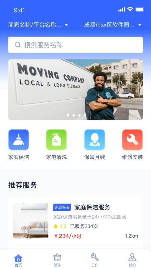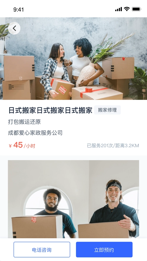 丰富多样的服务类目,包含家政服务、搬家、保姆月嫂等众多生活服务项目,能够满足用户的各类需求。