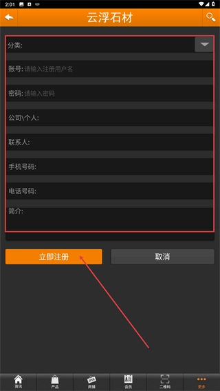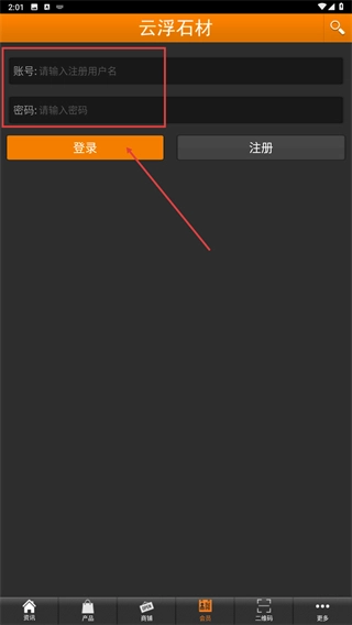 1、在【云浮石材】登录页,填写【账号-注册用户名】【密码-输入密码】后,点击【登录】按钮完成账号登录。