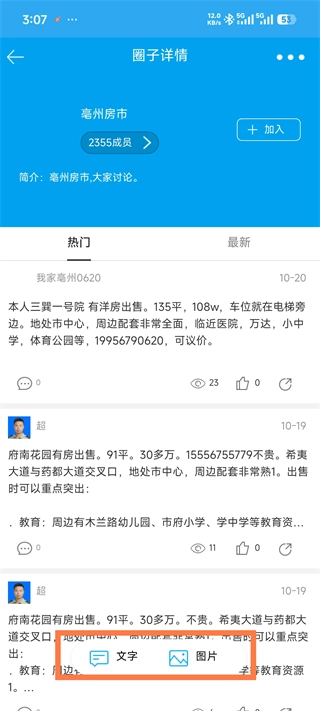 3、点击加入圈子后,下方提供文字和图片点击