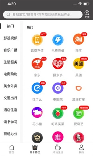 涵盖了用户日常生活里方方面面的服务,像购物、外卖、出行、电影票预订、酒店预订、学习、音乐等都包含在内。