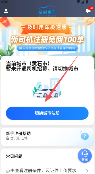 3、点击切换城市注册,找到能够注册的城市所在地。