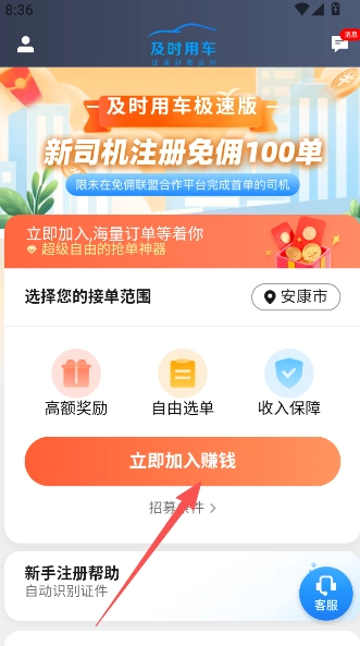 4、点击立即加入赚钱,跳转至司机端认证界面。