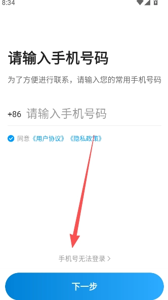 2、点击输入手机号码,然后选择“下一步”以继续后续操作。