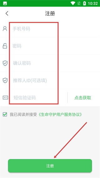 1、在【生命守护】的登录界面中,找到并点击【注册账号】选项,随后进入注册页面,着手创建新的账号。