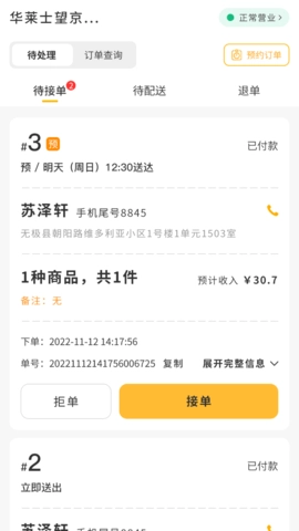 在账户管理上,聚极外卖配备了直观清晰的订单对账工具。商家支持按日结算,账期结束即可直接发起打款,这让商家能更便捷地打理财务,无需再为订单结算事宜烦心。聚极外卖的界面布局简洁大方,分类明确,操作流程十分顺畅。商家可以轻松完成各类订单操作,比如接单、处理催单以及退款申请等,进而能更高效地响应用户需求,提升服务质量。