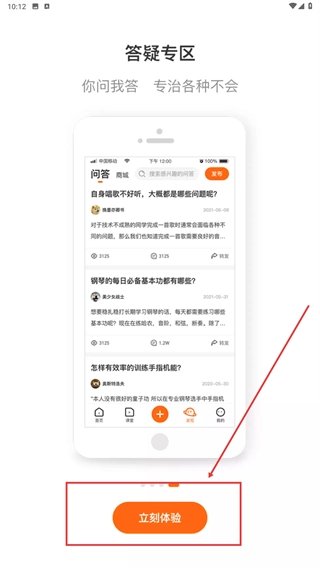 1、在进入页面,点击【立刻体验-功能按钮】,进入艺音在线主界面。