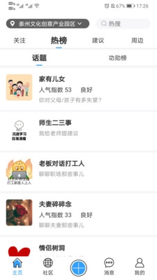 进入主页后,可选择关注、热榜、建议或周边板块来查看相关内容。