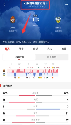 点击进入比赛详情页后,页面会展示完整的实时数据统计,涵盖比分变化、技术统计以及赛事分析等专业内容。