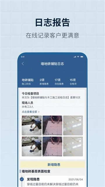 助力用户推进监理工作:可协助用户迅速查找家装相关知识、掌握订单详情、落实监理任务,让工作开展更为便捷,还能留存更多日志报告,进而提升工作效率。