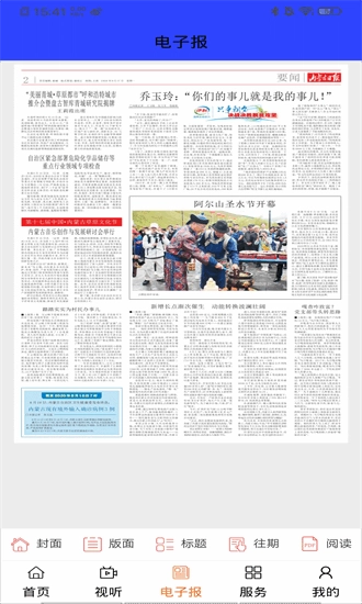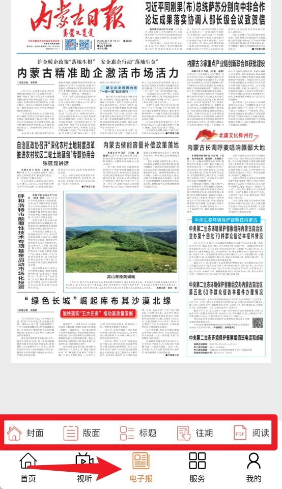 “电子报”板块支持在线阅读《内蒙古日报》等报纸,还能进行版面浏览和往期内容查阅。