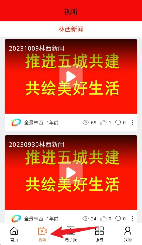 “视听”板块呈现本地新闻视频内容,用户可回看热门报道及政策解读类节目。
