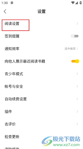 3、点击后会进入“设置”界面,在该界面中需点击列表里的“阅读设置”选项。