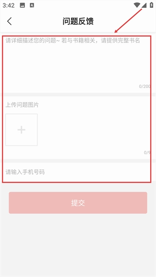 3、请按顺序填写问题描述内容、上传与问题相关的图片、输入用于联系的手机号码,将反馈所需的信息补充完整。