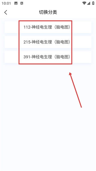 在切换分类的界面中,挑选对应的专业分类(例如【112-神经电生理(脑电图)】),以此明确学习或练习的科目方向。