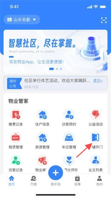 邻友物业怎么一键开门?