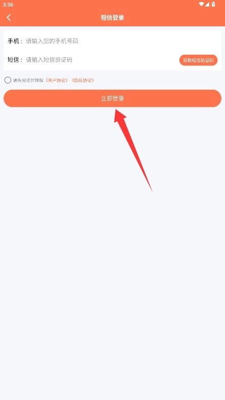 你可以在登录页面填写手机号码并输入短信验证码,接着勾选同意相关条款,最后点击“立即登录”按钮,这样就能进入应用了。