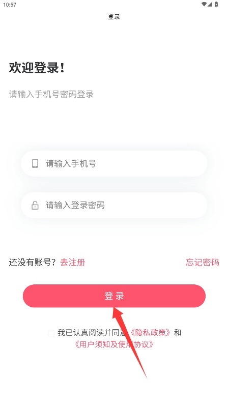 在登录页面输入手机号和登录密码,勾选同意相关条款后,点击登录按钮即可完成验证。