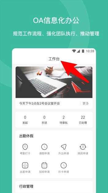 OA信息办公区整合了考勤、请假、行政管理等多项功能,有助于增强办公流程的规范性。