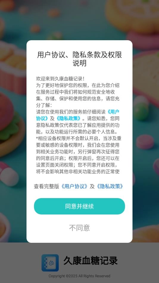 安装软件后打开应用,点击同意弹出的用户协议、隐私条款以及权限说明。