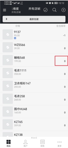 四、操作完成后,回到商品界面就能看到该商品的库存已显示为零了。
