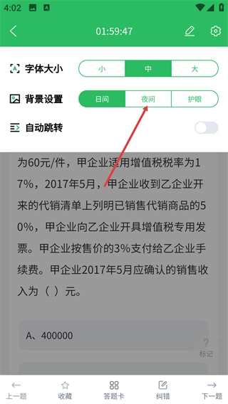 上学吧初级会计题库如何设置夜间模式
