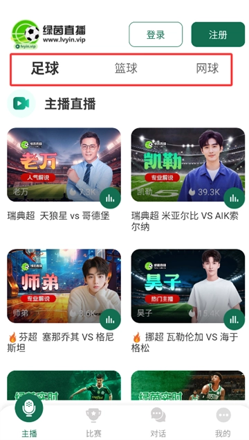 进入“主播”专区后,就能自主挑选观看足球、篮球、网球等不同类型体育赛事的实时直播内容。