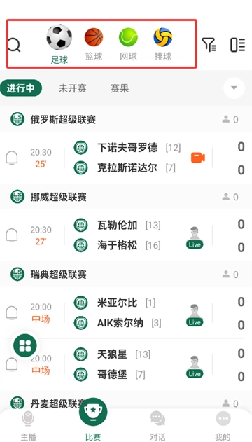 在“赛事”页面里,可以查看足球、篮球、网球、排球等各类体育赛事的详细赛程安排以及实时比分情况。