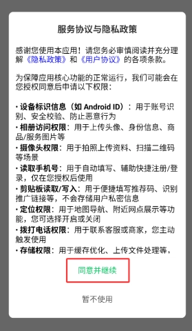 每次首次启动应用时,都会弹出服务协议和权限申请的提示窗口,需要逐一点击“同意”按钮后,才能继续进行注册流程,这样能确保你清楚了解自身的隐私保护相关内容。【具体操作教程也可以通过听取视频讲解来获取】