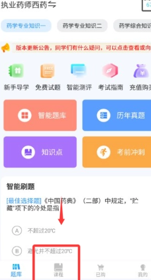 打开执业药师考试宝典后,先进入“我的”页面完成注册登录,接着选择你的备考类别,系统便会为你匹配相应的课程。