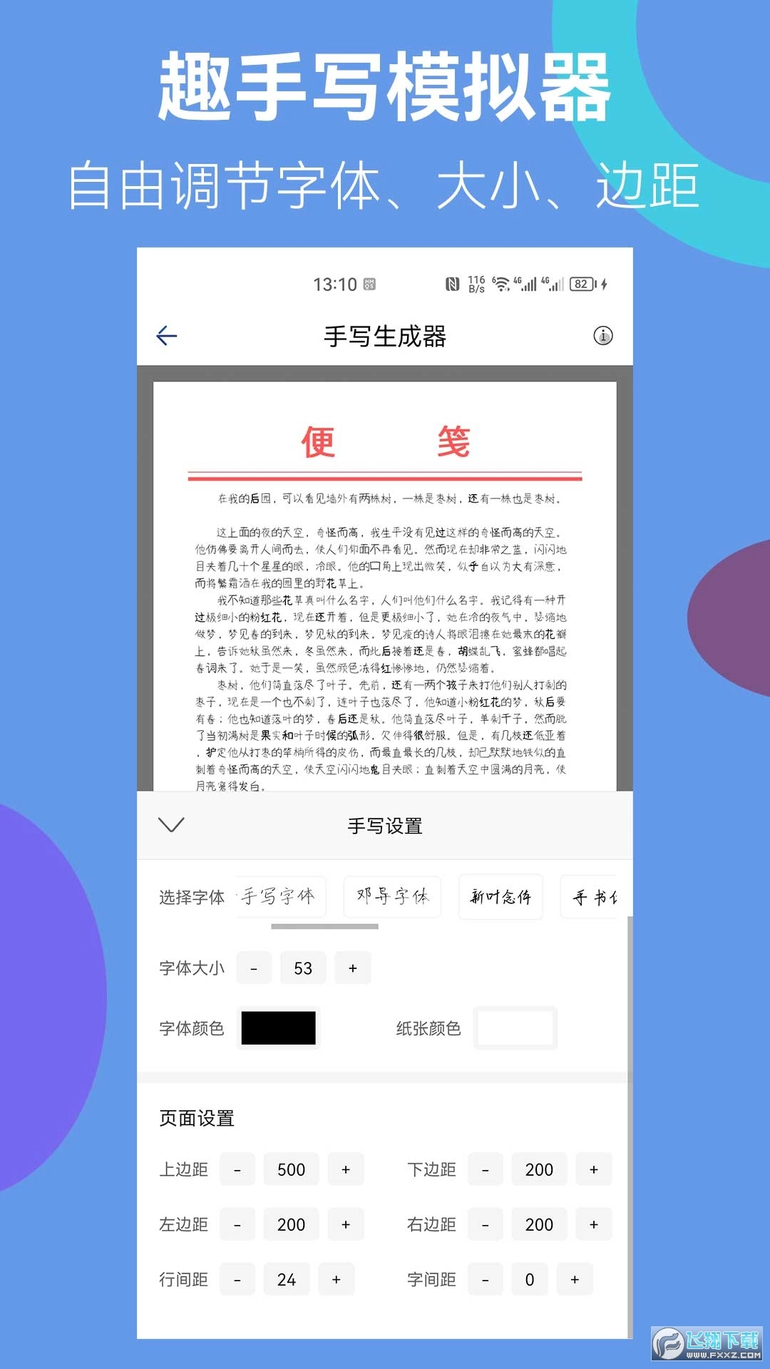 趣手写模拟器安卓版是一款趣味十足的字迹手写模拟软件,用户能够借助它模拟手写字迹,在线生成手写效果。软件支持选择多种不同字体,还允许上传个人喜爱的字体文件或图片素材,感兴趣的朋友不妨来体验一番。